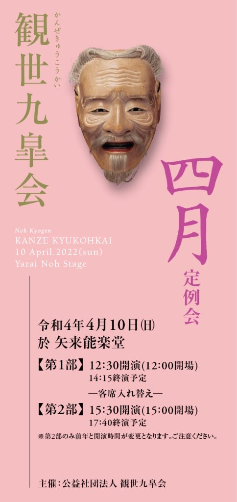 【観世九皐会定例会】#矢来能楽堂毎月第二日曜日に開催いたします。令和4年上半期(6月まで)のチケット、発売中です!『 観世...