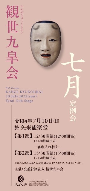【観世九皐会7月定例会】令和4年7月10日(日)#矢来能楽堂【第1部】能「敦盛」鈴木啓吾・狂言「蟹山伏」善竹十郎【第2部】能「柏...