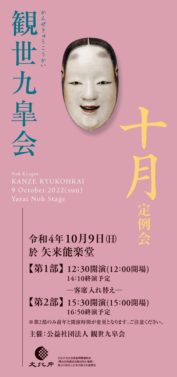 【観世九皐会10月定例会】令和4年10月9日(日)https://t.co/dRFW2eQnmg【観世九皐会10月定例会】令和4年11月13...