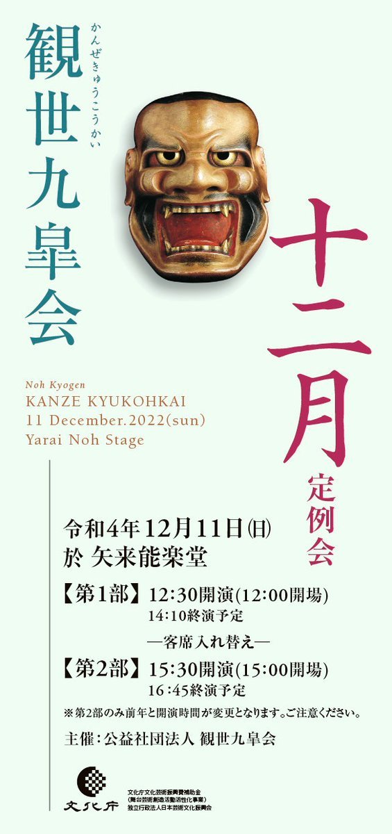 【観世九皐会12月定例会】#矢来能楽堂令和4年12月11日(日)今週末。本年最後の矢来能楽堂公演です。【第1部】狂言「萩大名」野...