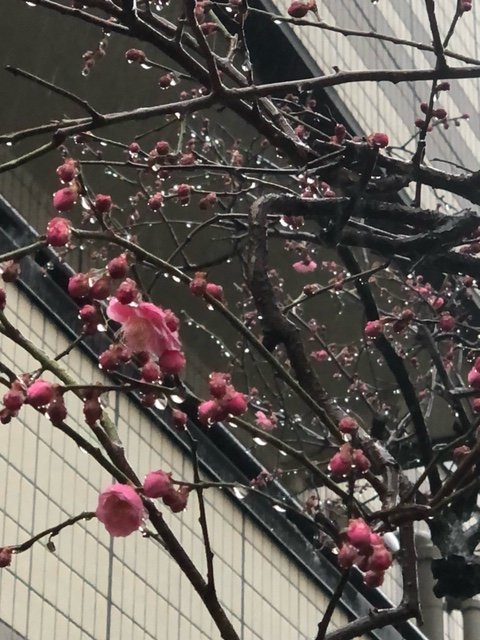 本日の雪、神楽坂近辺はお昼過ぎには冷たい雨に変わりました。日曜は晴れ予報ですが、どうぞ暖かくしてお出かけください。【観世九...
